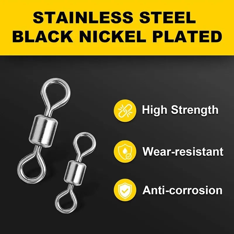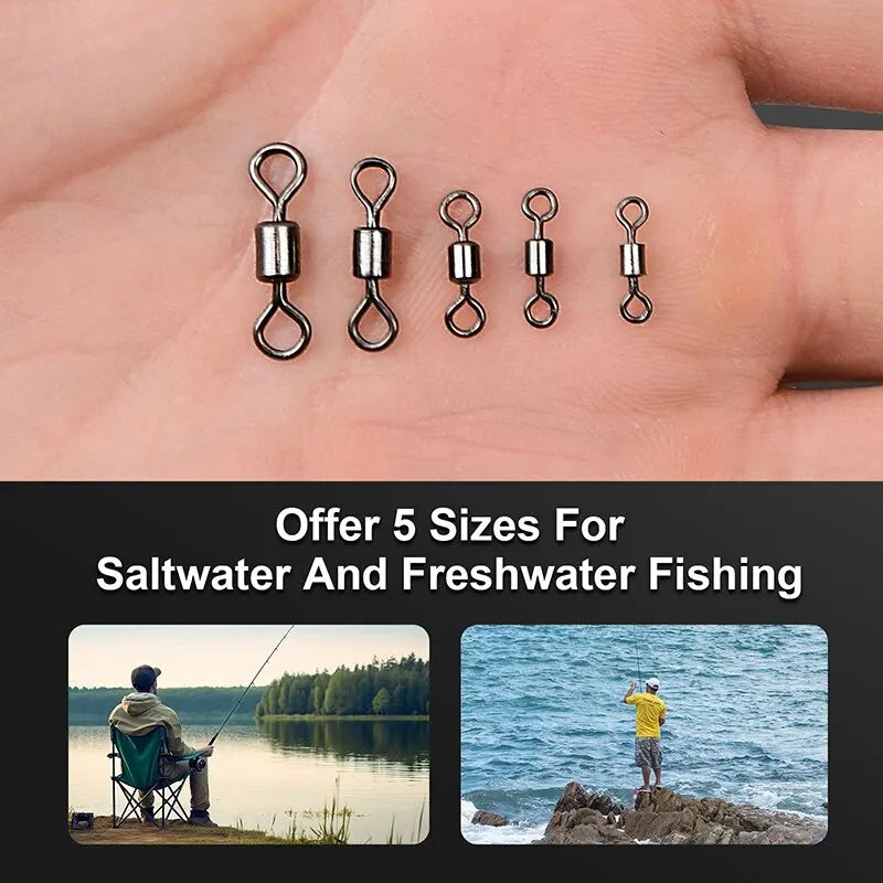 250pcs/Set Fishing Connector 2 4 6 8 10 Fishing Barrel Bearing Rolling Swivel Solid Ring Lures Fishing Accessories