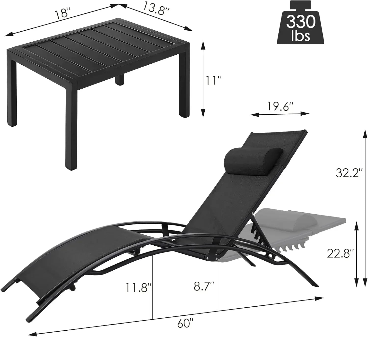 Customizable 3 pcs Poolchairs Patio Chaise Lounge Set with Headrest, 5-Level Adjustable Sunbathing Tanning Poolside Recliner Cha